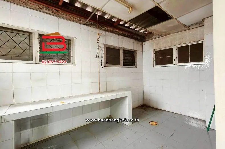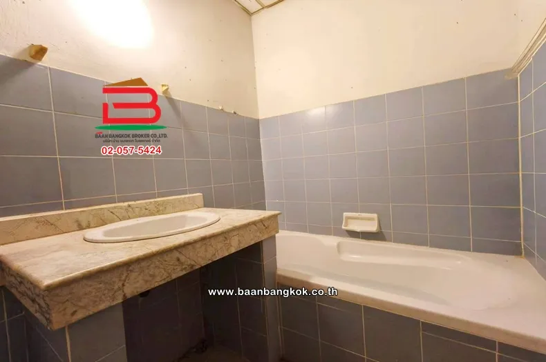 การตกแต่ง : พื้นชั้น 1 ปูด้วยกระเบื้องลายหินอ่อน ชั้นบนปูด้วยไม้ปาเก้ พื้นที่ใช้สอย 176 ตร.ม. หมู่บ้านร่มรื่น บริเวณรั้วหน้าบ้านยังเป็นวิวทุ่งนา
