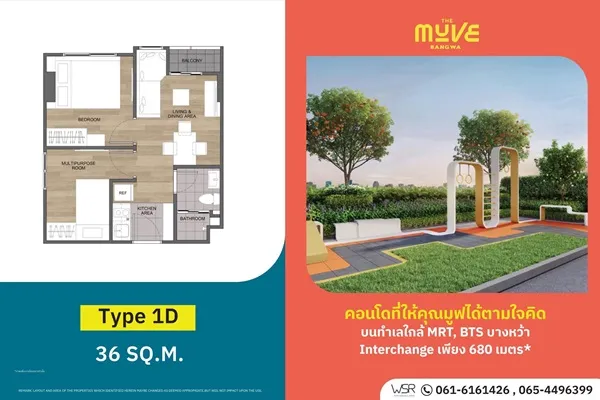 คอนโดใหม่พร้อมอยู่ เดอะ มูฟ บางหว้า เพียง 2 นาที ถึงสถานีรถไฟฟ้าบางหว้า โทร 065-4496399