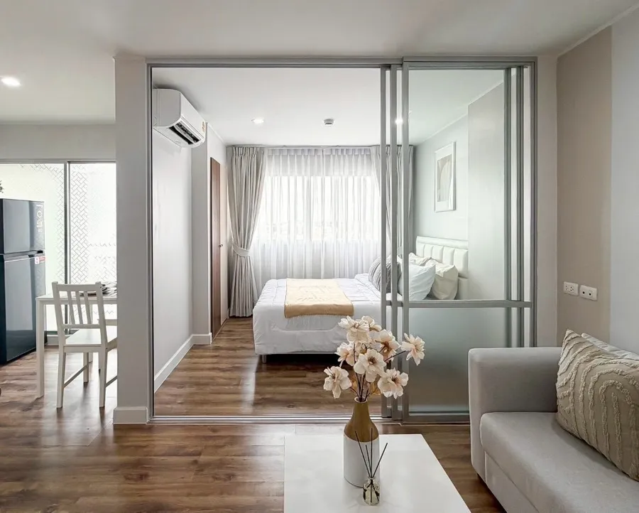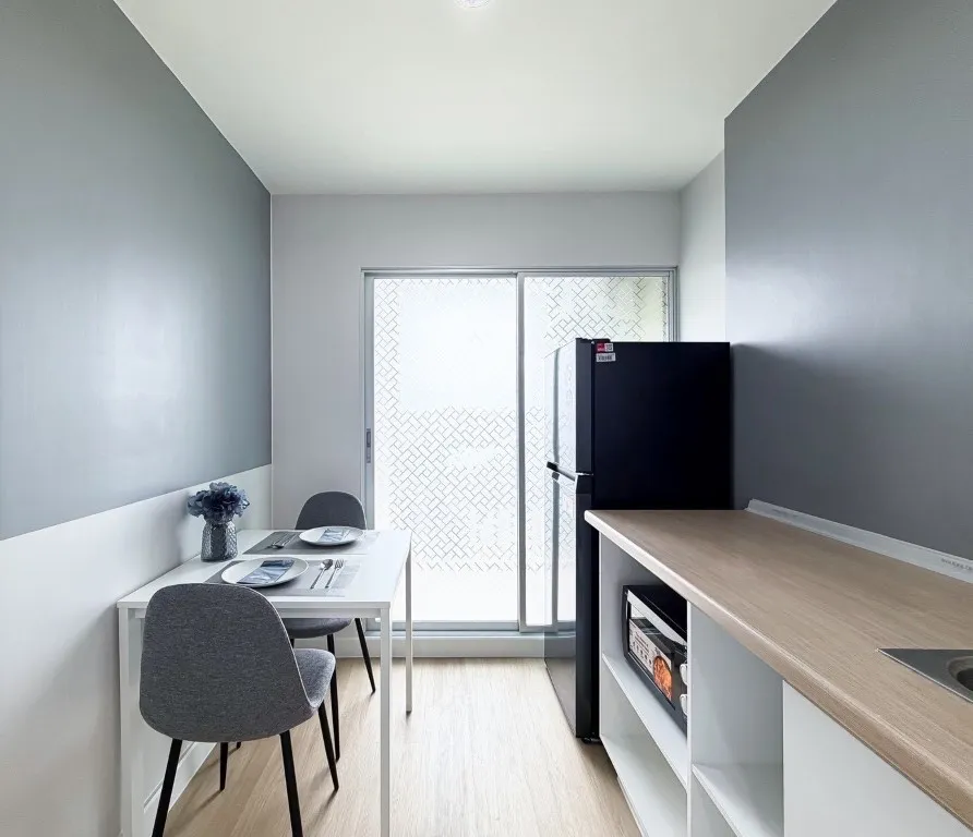 คุ้มสุดในย่านนี้!! ลุมพินี คอนโดทาวน์ รามอินทรา-ลาดปลาเค้า 2 เฟอร์ครบ ใกล้รถไฟฟ้า เซ็นทรัล ม.เกษตร เดินทางสะดวก เชื่อมต่อหลายเส้นทาง ของกินเพียบ ใกล้เซเว่น ตลาด ร้านค้า ร้านอาหาร สิ่งอำนวยความสะดวกครบ ***ภาพถ่ายจากห้องจริงไม่ใช่ห้องตัวอย่าง มีรูปให้ดูอีกเพียบ ถ้าสนใจอยากดูรูปเพิ่มเติมทักมาได้เลยค่ะ*** ลุมพินี คอนโดทาวน์ รามอินทรา - ลาดปลาเค้า 2 มีให้เลือก 2 ห้อง 2 สไตล์ ฟังก์ชั่นเท่ากันหมด ต่างกันแค่การตกแต่ง ห้องที่ 1 : ขนาดห้อง 26 ตร.ม. ตึก B ชั้น 8 1 ห้องนอน 1 ห้องนั่งเล่น 1 ห้องน้ำ ราคาเพียง 1.75 ลบ. ห้องที่ 2 : ขนาดห้อง 26 ตร.ม. ตึก B ชั้น 5 1 ห้องนอน 1 ห้องนั่งเล่น 1 ห้องน้ำ ราคาเพียง 1.75 ลบ. เฟอร์นิเจอร์และเครื่องใช้ไฟฟ้าครบครัน + แอร์ + ทีวี, ตู้เย็น + ไมโครเวฟ, เครื่องทำน้ำอุ่น + ที่นอน + เตียงนอน + ตู้เสื้อผ้า, โซฟา โต๊ะกลาง + โต๊ะรับประทานอาหารพร้อมเก้าอี้ + เคาน์เตอร์ครัว สิ่งอำนวยความสะดวก > ฟิตเนส > เซเว่น > ร้านอาหาร, ร้านซัก อบ รีด > สวนหย่อม > รปภ. 24 ชม. ที่ตั้ง : ถ.ลาดปลาเค้า แขวงอนุสาวรีย์ เขตบางเขน กทม. 10220 พิกัด : https://maps.app.goo.gl/DcUyGP3QnZYZbCXy8 สถานที่สำคัญใกล้เคียง • รถไฟฟ้าสายสีชมพู สถานีลาดปลาเค้า 0.8 กม. • เซ็นทรัลพลาซ่า รามอินทรา 1.8 กม. • มหาวิทยาลัยเกริก 2.0 กม. • เทสโก้ โลตัส หลักสี่ 2.6 กม. • มหาวิทยาลัยศรีปทุม 2.8 กม. • มหาวิทยาลัยราชภัฏพระนคร 3.2 กม. • มหาวิทยาลัยนอร์ทกรุงเทพ 3.9 กม. • สถาบันบัณฑิตศึกษาจุฬาภรณ์ 4.4 กม. • มหาวิทยาลัยเกษตรศาสตร์ 4.7 กม. • ท่าอากาศยานดอนเมือง 6.7 กม. สนใจติดต่อ/นัดชมห้อง 0638089912 (มุนินทร์) Line id : munin_1902
