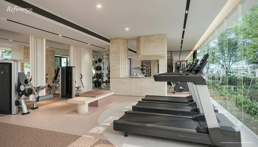 Reference Ekkamai is a 44-story high-rise condominium by SC Asset, with only 396 units emphasizing privacy. It offers 207 parking spaces (excluding stacked parking), divided into 157 conventional parking spaces and 50 automated parking spaces, plus 6 EV chargers. The project is located on Ekkamai Road, approximately 900 meters from Ekkamai BTS station, near Thonglor Soi 10, a main soi connecting Thonglor and Ekkamai. Located opposite the old town area and 170 meters from Donki Thonglor.