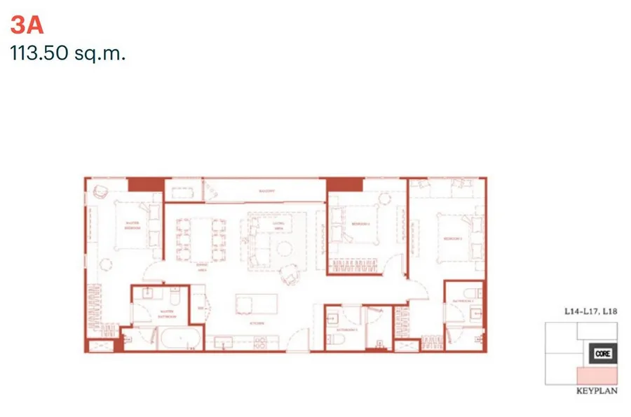 ● เป็น 3-Bedroom ขนาด 113.50 ตารางเมตร ที่วิวโล่งมีแค่ 5 ห้องทั้งโครงการ อยู่ที่ชั้น 14-18 ตอนนี้ทางโครงการไม่มีขายแล้ว