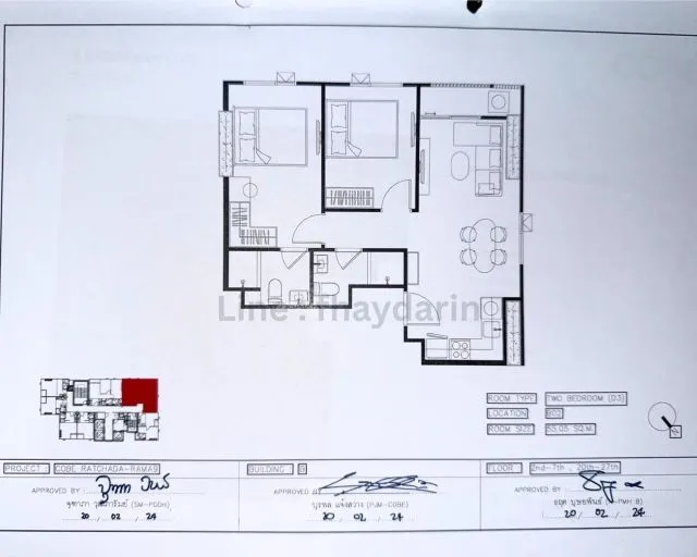 อาคาร B ชั้น 6 เลขที่ B0602 ขนาด 55.05 ตารางเมตร 2 ห้องนอน 2ห้องน้ำ (ห้องมุม) ใกล้ MRT ศูนย์วัฒนธรรม