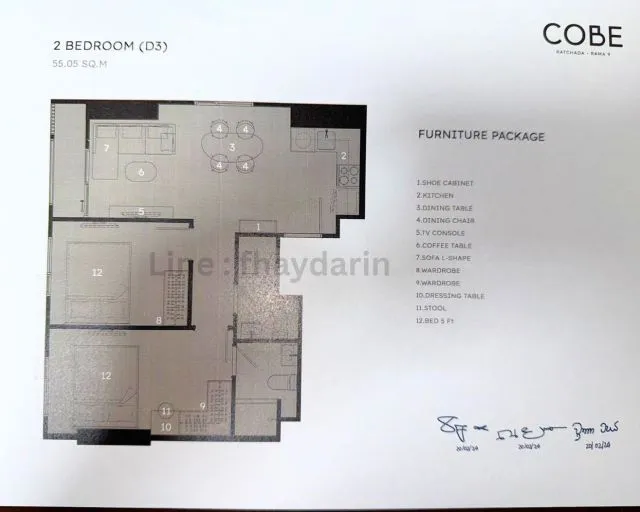 รูปแบบการขาย Fully Furnished ได้เฟอร์นิเจอร์ ได้แก่ SHOE CABINET , KITCHEN , DINING TABLE