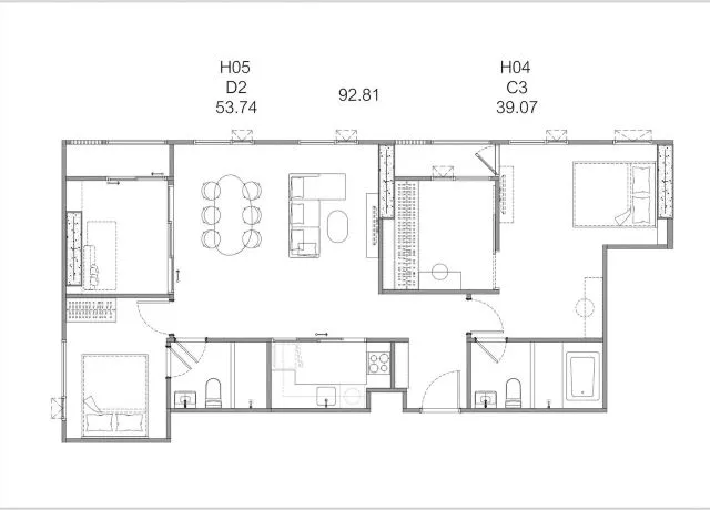 อาคาร H ชั้น 20 เลขที่ H2104-H2105 ขนาด 92.81 ตารางเมตร 3 ห้องนอน 2ห้องน้ำ (ห้องมุม) ใกล้ MRT ศูนย์วัฒนธรรม