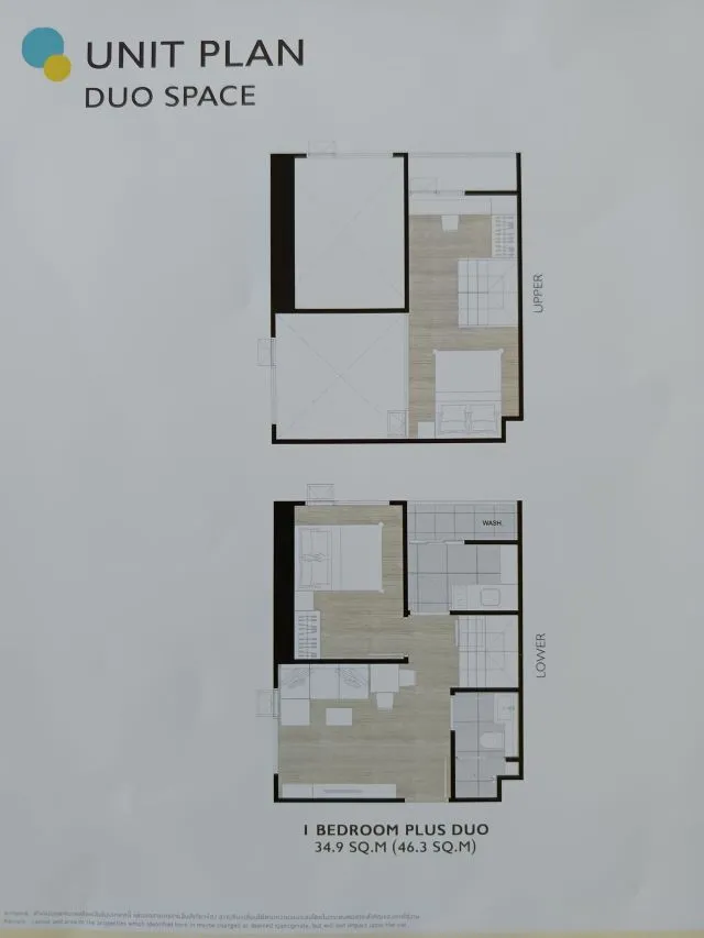 เนื้อที่ 46.90 ตร.ม. 2 ห้องนอน 1 ห้องน้ำ 1 ห้อรับแขก รูปแบบห้อง Duo Space 2 ชั้น