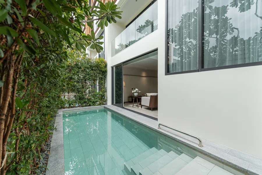 3-bedroom, 3-bathroom, 158.3 sq.m., in a 2-storey duplex layout with a private swimming pool, fully furnished and decorated. Ready to move in.