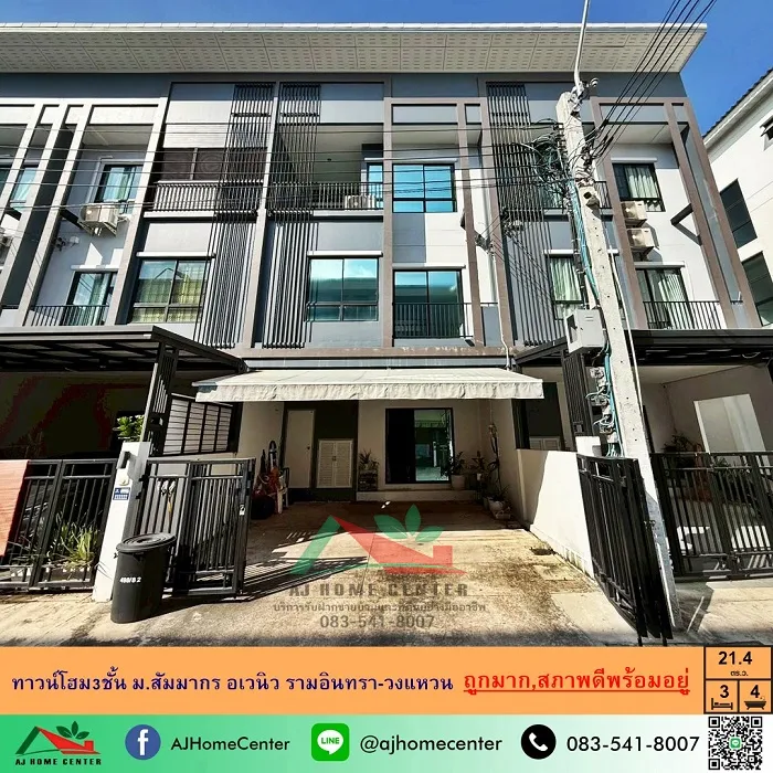 ขายถูก4.49ล้าน ทาวน์โฮม3ชั้น 21.4ตรว. ม.สัมมากร อเวนิว รามอินทรา-วงแหวน