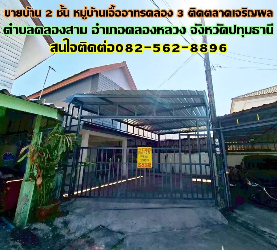 ขายบ้าน 2 ชั้น หมู่บ้านเอื้ออาทรคลอง 3 ติดตลาดเจริญผล ถนนเลียบคลอง3 ตำบลคลองสาม อำเภอคลองหลวง จังหวัดปทุมธานี