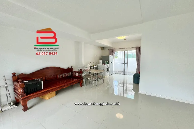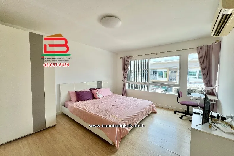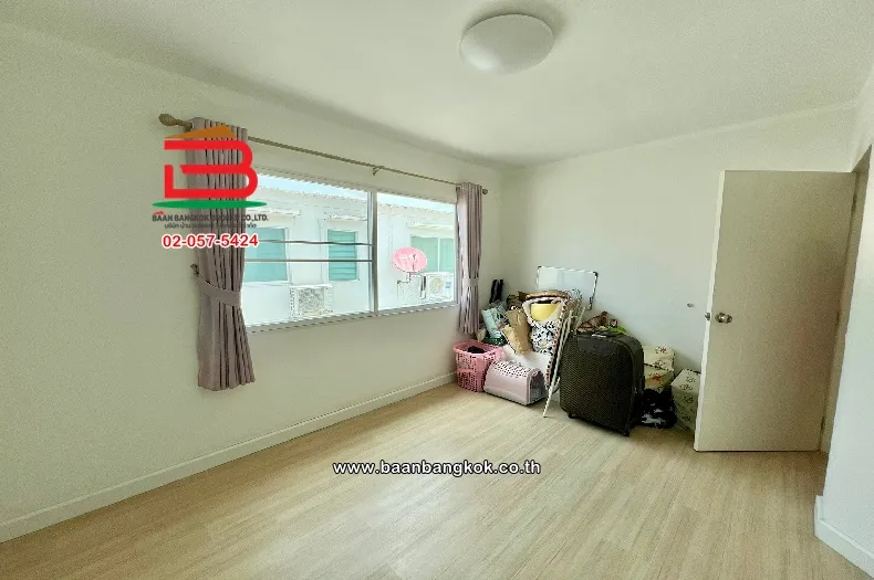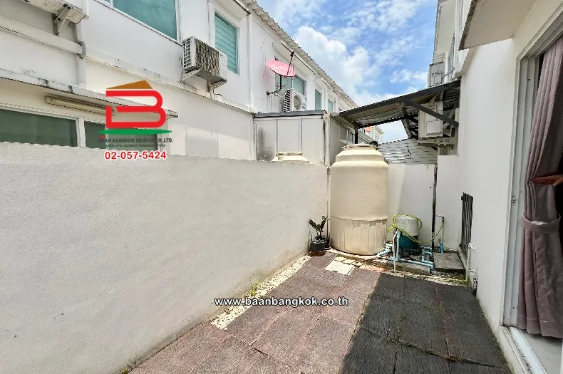 การตกแต่ง : พื้นชั้นล่างปูแกรนิต พื้นชั้นบนปูลามิเนต ติดมุ้งลวด-เหล็กดัด ผ้าม่านครบ มีปั้มน้ำ-แท็งค์น้ำ แอร์ 1 เครื่อง ด้านหลังบ้านมีพื้นที่วาง และพื้นที่ข้างบ้าน