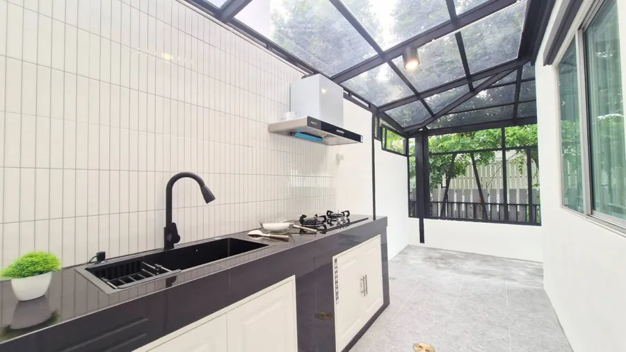 + ต่อเติมครัวหลังบ้าน + เคาน์เตอร์ครัวครบชุด + เครื่องดูดควัน