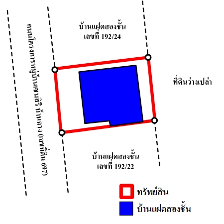 บสส. รับโอนกรรมสิทธิ์สิ่งปลูกสร้างระบุเป็นบ้านพักอาศัยแฝดตึกสองชั้น เลขที่ 192/23 และโรงจอดรถ