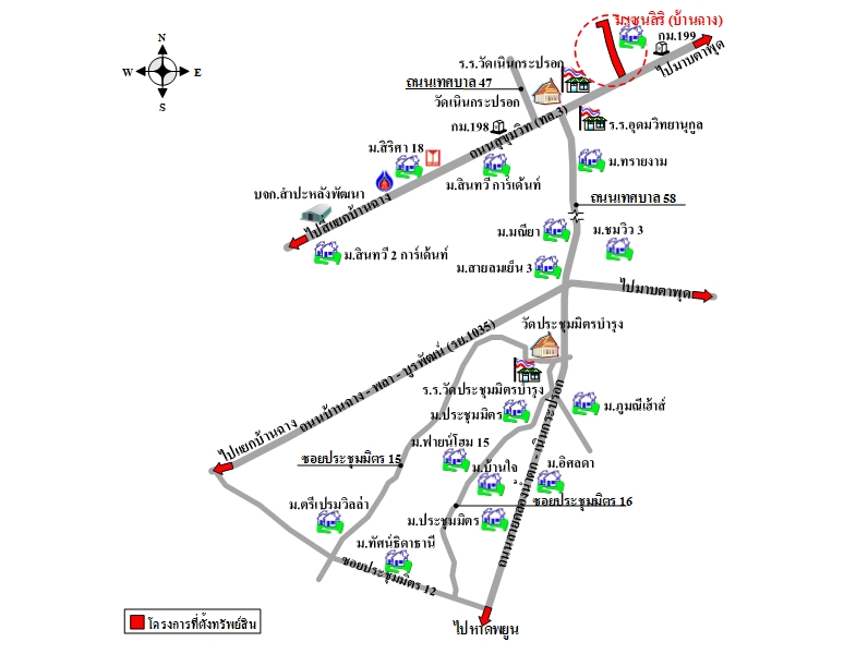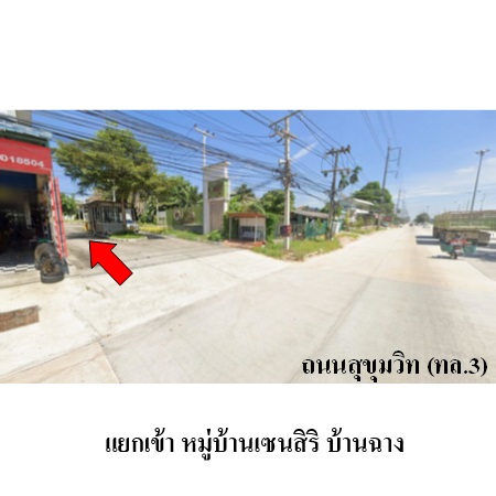 ถนนผ่านหน้าทรัพย์สิน ได้แก่ ถนนโครงการหมู่บ้านเซนสิริ บ้านฉาง เป็นทางในโครงการจัดสรรที่ได้รับอนุญาตแล้ว ผิวจราจรคอนกรีต กว้างประมาณ 8 ม. เขตทางกว้างประมาณ 10 ม.