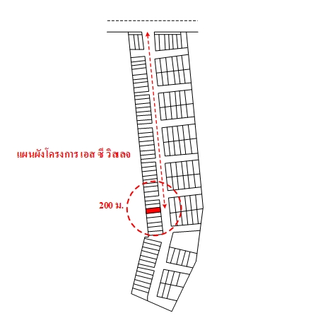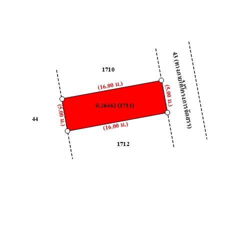 ที่ดินเป็นรูปสี่เหลี่ยมผืนผ้า ขนาดแปลงที่ดินด้านทิศตะวันออกติดถนน กว้างประมาณ 5 ม. ลึกประมาณ 16 ม.