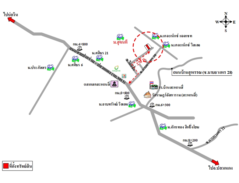 ถนนผ่านหน้าทรัพย์สิน ได้แก่ ถนนภายในโครงการฯ เป็นทางส่วนบุคคลที่จดภาระจำยอมให้แปลงทรัพย์สินแล้ว ผิวจราจรคอนกรีต กว้างประมาณ 6 ม. เขตทางกว้างประมาณ 8 ม.