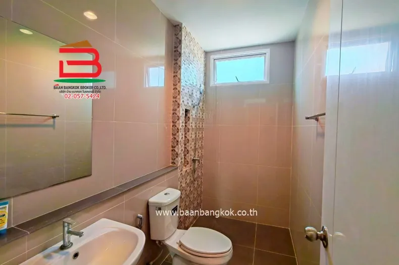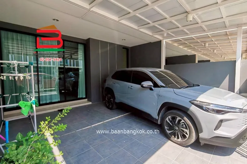 การตกแต่ง : ต่อเติมเค้าท์เตอร์ครัว ซิงค์ล้างจาน เตาแก๊ส ฮู้ดดูดควัน หลังคาเมทัลชีทสูงโปร่ง ติดตั้งพัดลมระบายอากาศบนหลังคา พร้อมถังเก็บน้ำ 700 ลิตร และปั๊มน้ำ ต่อเติมหลังคาโรงจอดรถ โดยใช้วัสดุเมทัลชีท PU โฟม ป้องกันความร้อน พร้อมปูกระเบื้องพื้นโรงจอดรถ พื้นชั้น 1 ปูด้วยกระเบื้องแกรนิตโต้ พื้นชั้น 2 ปูด้วยลามิเนต ฟังก์ชั่นการใช้งานครบ วัสดุทันสมัย พร้อมสิ่งอำนวยความสะดวกในโครงการ อาทิเช่น รปภ.24 ชม. เข้า-ออกด้วยระบบ Key Card กล้อง CCTV คลับเฮ้าส์ ฟิตเนส สระว่ายน้ำ สวนสาธารณะ ในโครงการร่มรื่น เงียบสงบ
