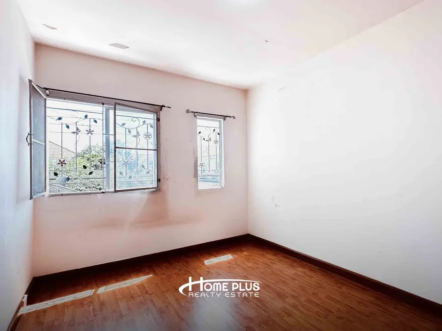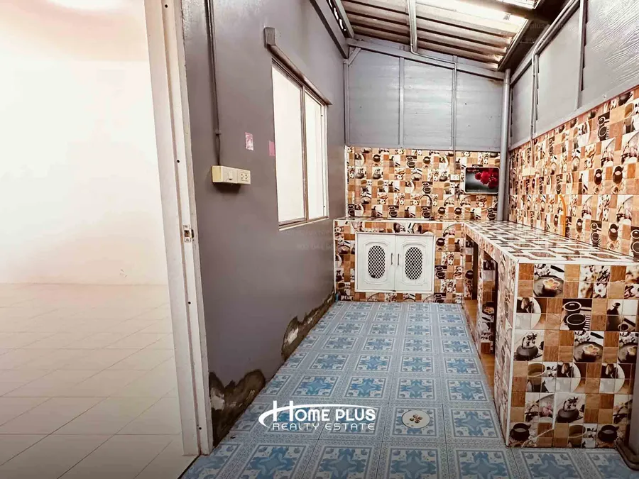 ชั้น 1: พื้นกระเบื้อง, ฝ้าเพดานฉาบเรียบ, มุ้งลวด, เหล็กดัด, ปั๊มน้ำ, ต่อเติมครัวหลังบ้าน
