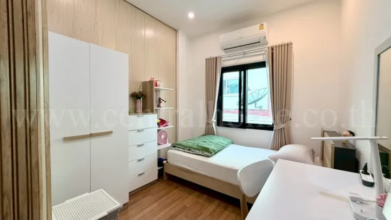 - 3 ห้องนอน, 2 ห้องน้ำ, 1 ห้องรับแขก, 1 ห้องครัว, 2 ที่จอดรถ