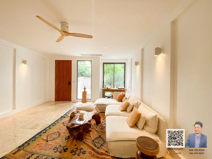 ทาวน์โฮมหลังนี้ถูกออกแบบโดยคู่สามีภรรยาชาวไทย-สวีเดน ที่เข้าใจความหมายของความสงบในความเรียบง่าย โทนสีขาว-ครีมอันนุ่มนวล เพดานสูงที่ให้คุณหายใจได้สบาย แสงธรรมชาติที่ติดตามคุณตลอดวัน