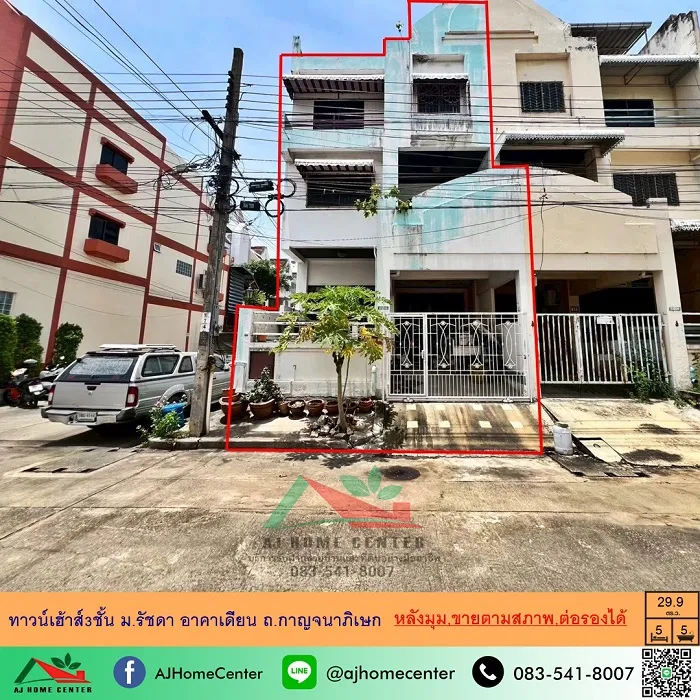 ขายตามสภาพ ทาวน์เฮ้าส์3ชั้น 29.9ตรว. หลังมุม ม.รัชดา อาคาเดียน เหมาะซื้อไปรีโนเวท ราคาพร้อมคุย