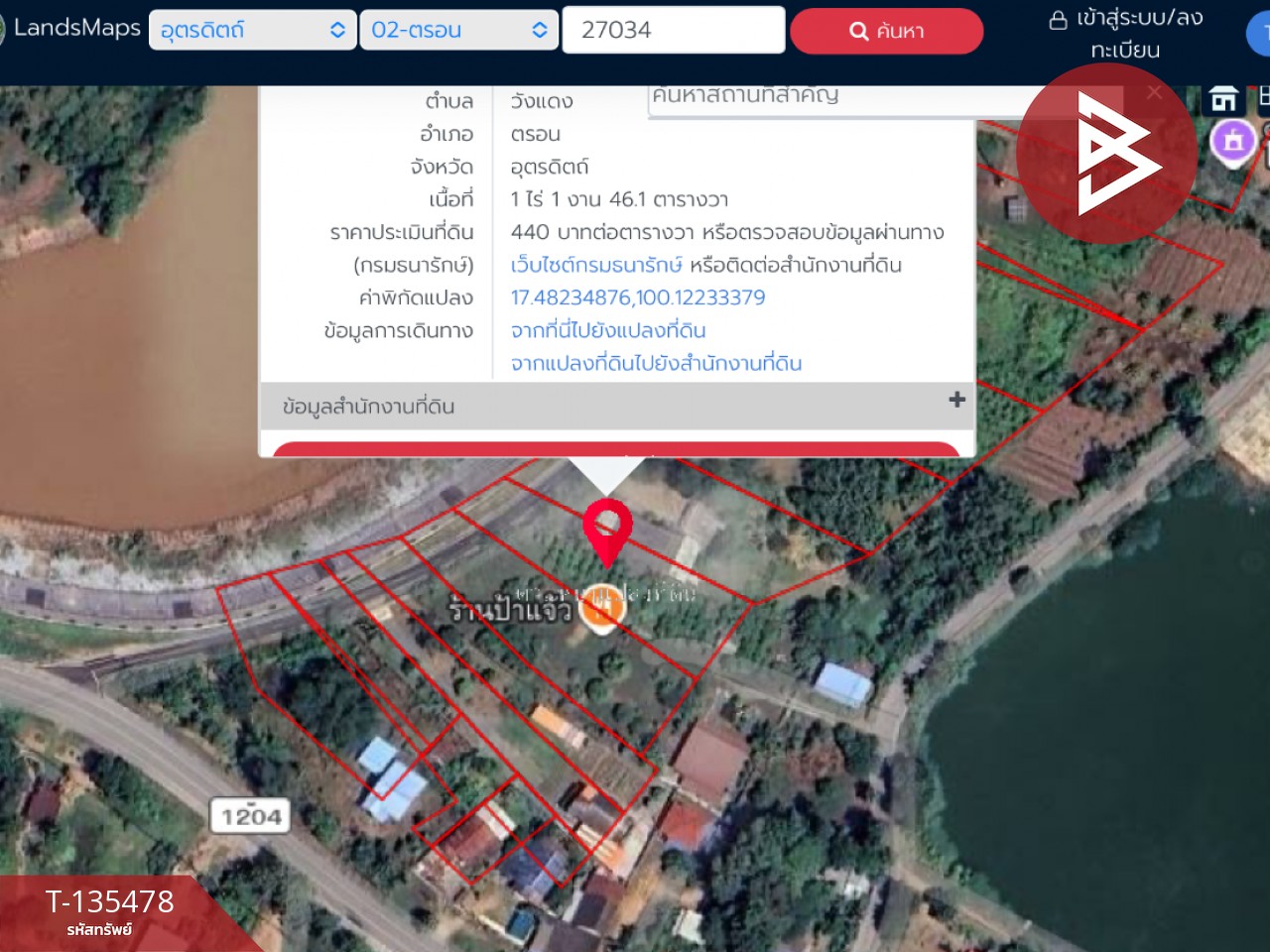 ขายด่วนที่ดิน เนื้อที่ 1 ไร่ 1 งาน 46.1 ตารางวา อ.ตรอน จ.อุตรดิตถ์ ทำเลดี