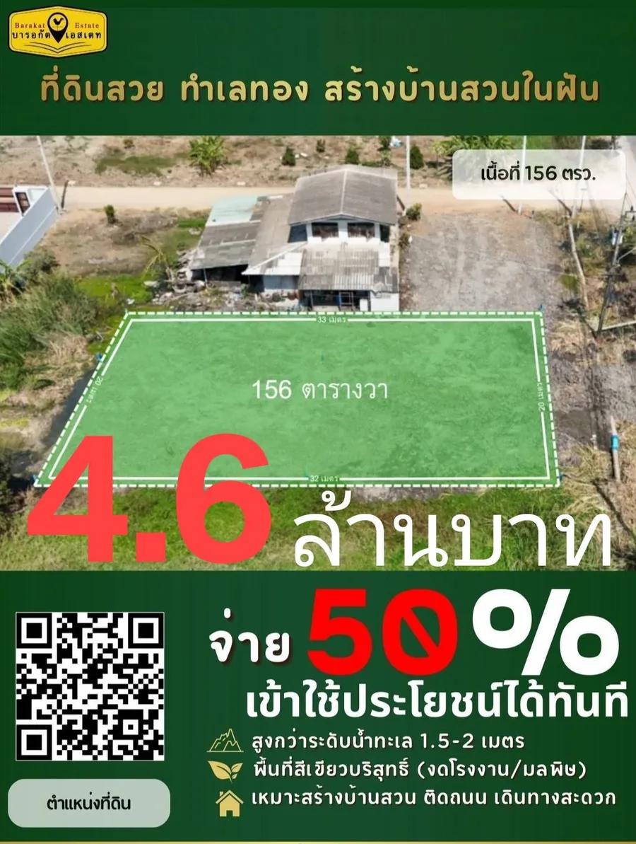 แปลงที่ 2 : ขนาด 156 ตารางวา ราคา 4.6 ล้านบาท