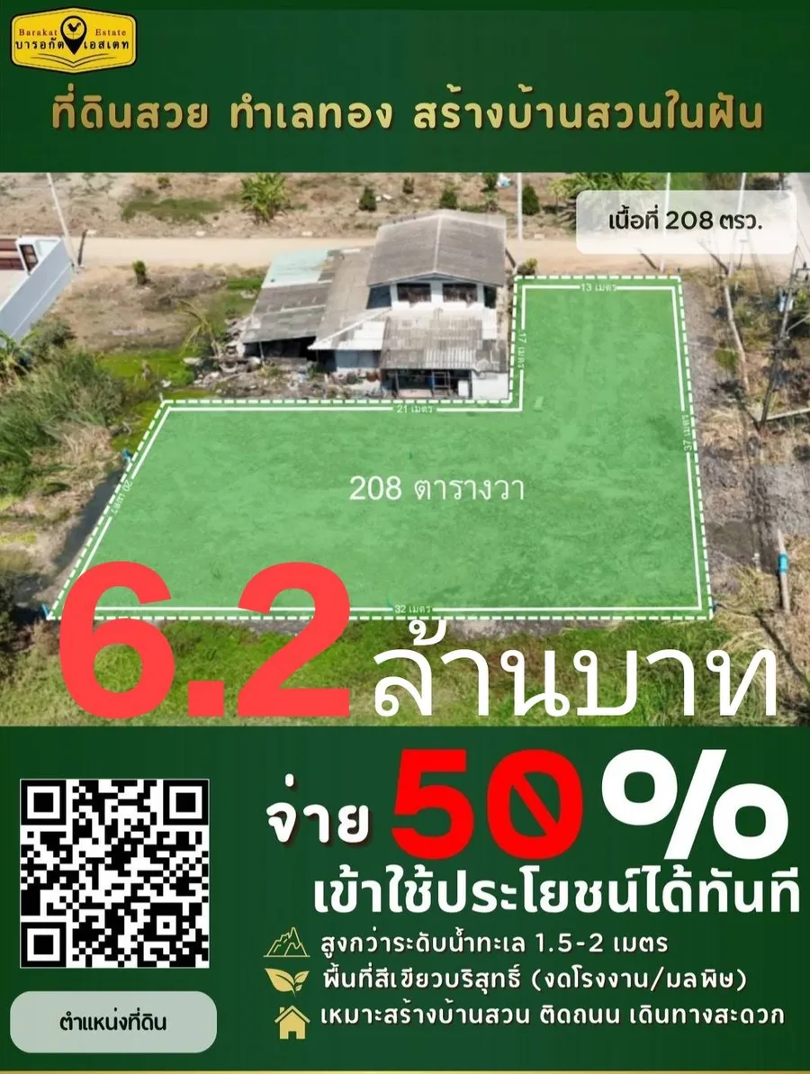 แปลงที่ 3 : ขนาด 208 ตารางวา ราคา 6.2 ล้านบาท