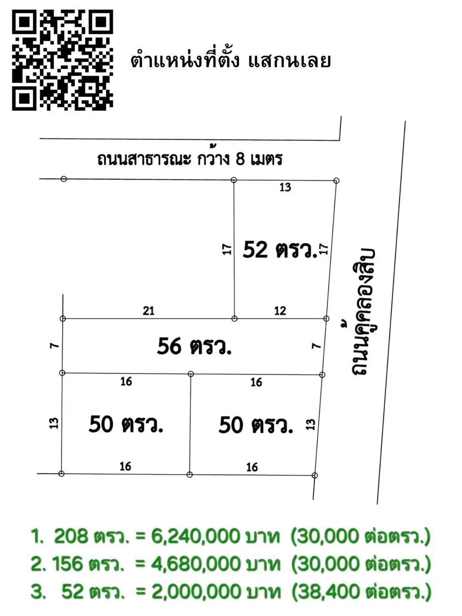 แปลงที่ 1 : ขนาด 52 ตารางวา ราคา 2 ล้านบาท