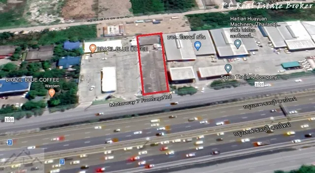 ขายที่ดินถมแล้ว 321 ตารางวา เลียบมอเตอร์เวย์สาย7 กรุงเทพ ชลบุรี ขาออก ติดปั๊มซัสโก ใกล้สมิติเวช ศรีนครินทร์