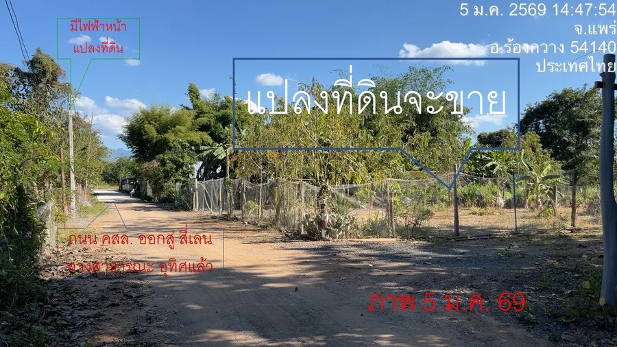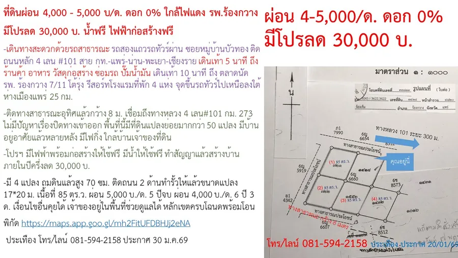 ขายที่ดินผ่อน ดอกเบี้ย 0% ใกล้ไฟแดง รพ.ร้องกวาง จังหวัดแพร่