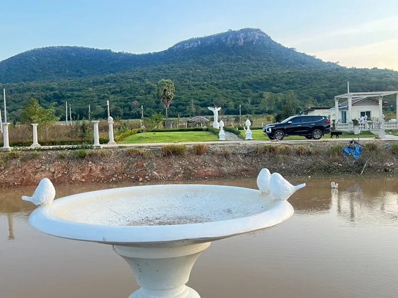-มีบ่อน้ำขนาดใหญ่ น้ำมีตลอดทั้งปี (เลี้ยงปลา / พายเรือเล่นได้)