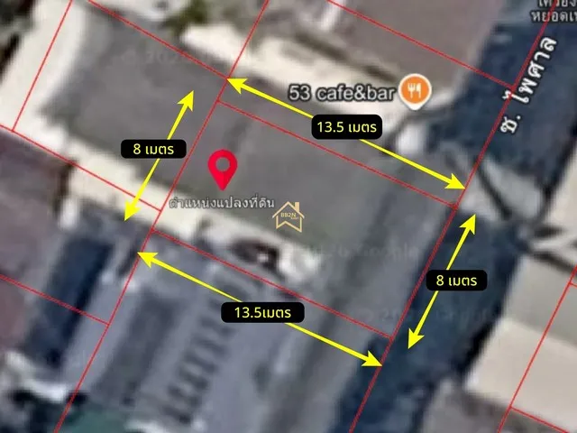 - แปลงที่ดินกว้าง 8 เมตร ลึก 13.5 เมตร