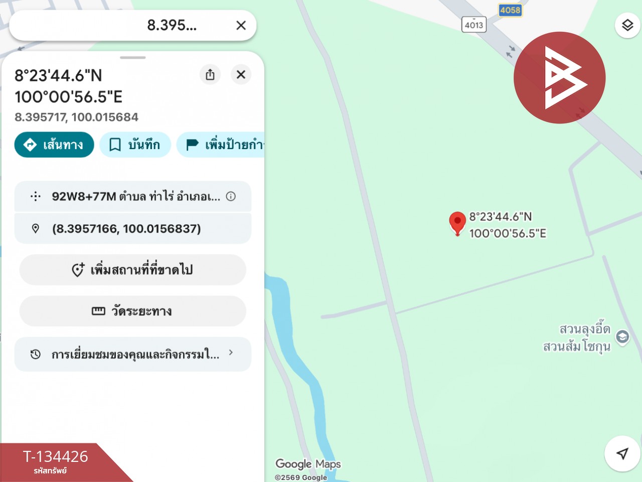 ลิงค์แผนที่ : https://maps.google.com/?q=8.39571657,100.01568368