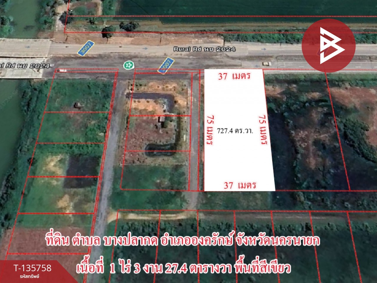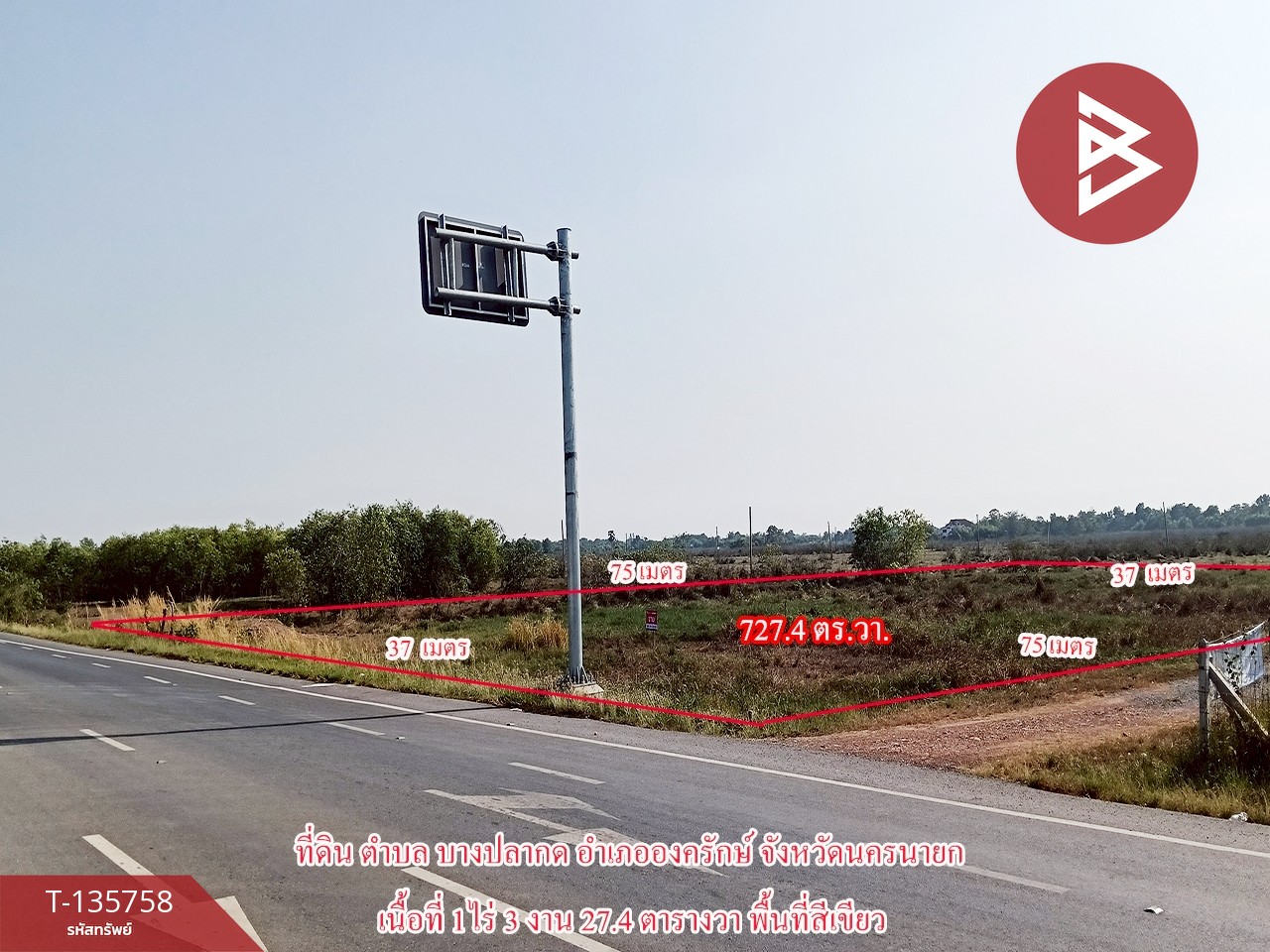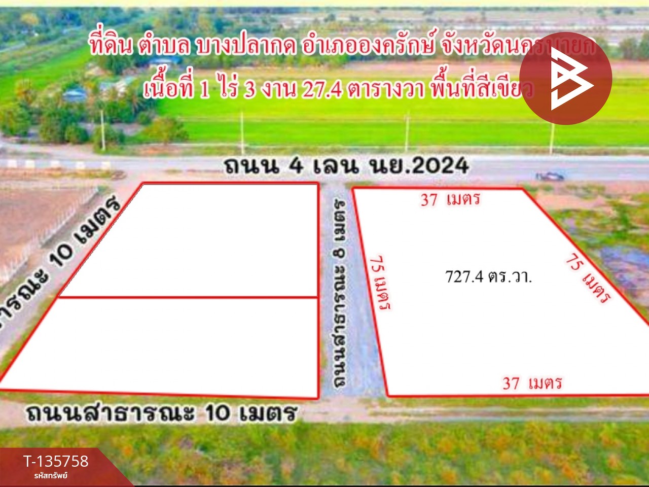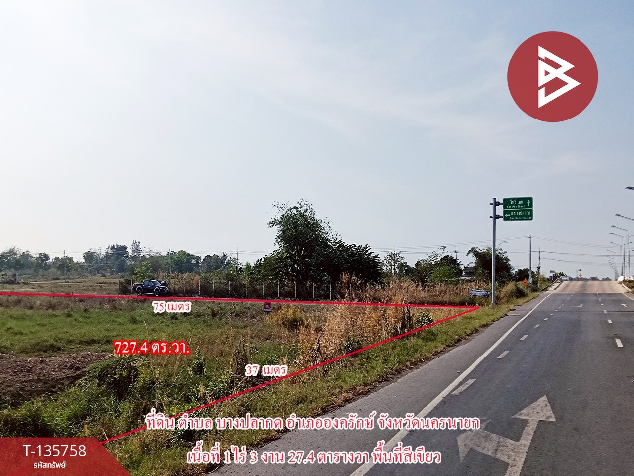 ขายที่ดิน เนื้อที่ 1 ไร่ 3 งาน 27.4 ตารางวา อ.องครักษ์ นครนายก