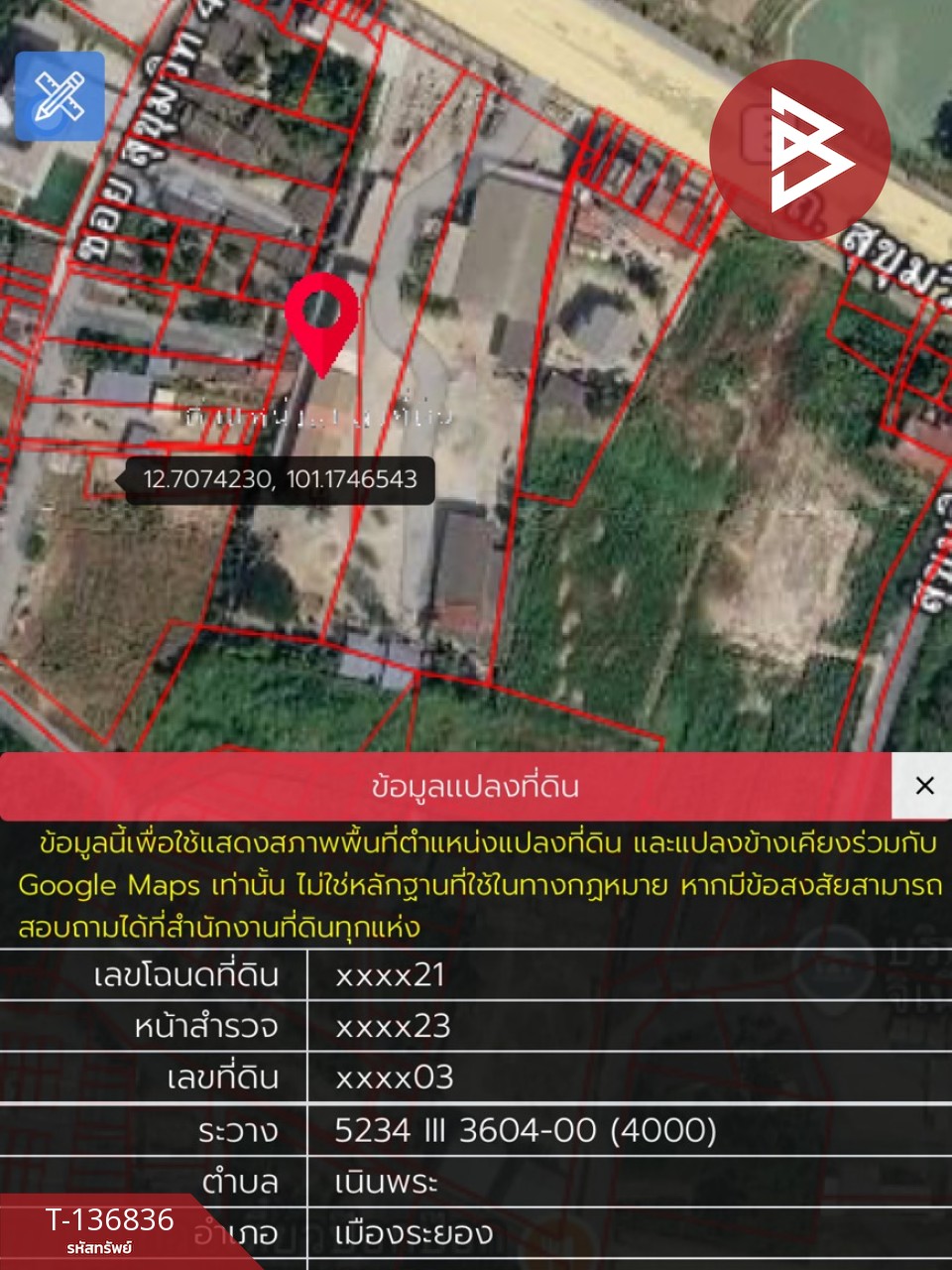 ขายที่ดิน เนื้อที่ 4 ไร่ เนินพระ ระยอง