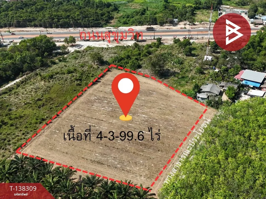 ขายที่ดิน เนื้อที่ 4 ไร่ 3 งาน 99.6 ตร.วา ตะพง ระยอง