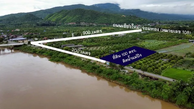 ขายที่ดิน 100ตรว. เริ่ม 490,000บ. หน้าติดแม่น้ำปิง น่ำไม่ท่วม วิวเขา บ้านทุ่งหมากหนุ่ม ต.สบเตี๊ยะ อ.จอมทอง เชียงใหม่