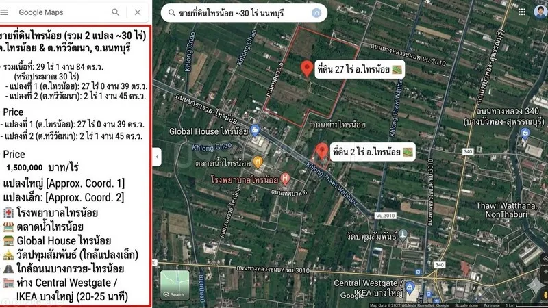 แปลง 27 ไร่: https://maps.app.goo.gl/uF5W7xXyL7zY6pE88 (ต.ไทรน้อย)