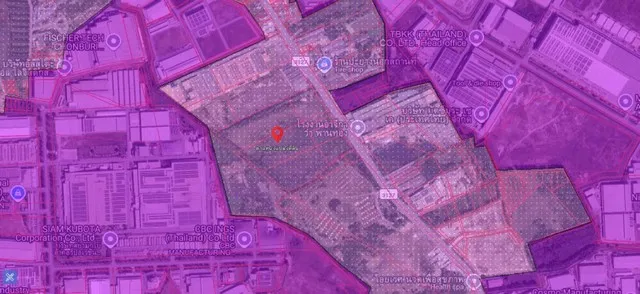 ขายที่ดิน 46 ไร่ ผังสีสีม่วงจุดขาว ถนนเส้น 3127 สวยติดถนน ติด Amata City ชลบุรี