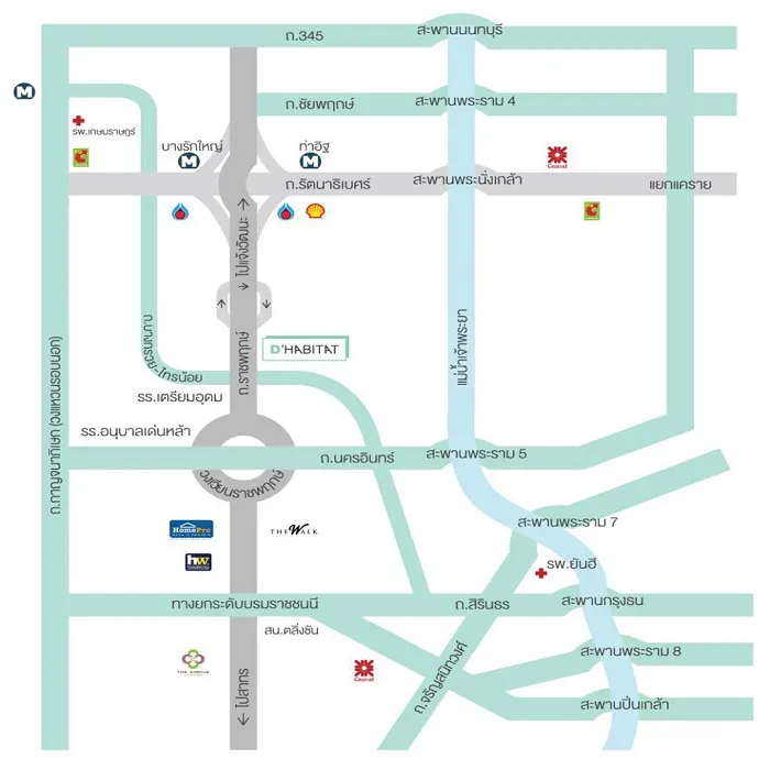 การเดินทาง เริ่มจาก ถนนราชพฤกษ์ > วงเวียนพระราม5 > กลับรถวงแหวน รัตนาธิเบศร์ > D’HABITAT ราชพฤกษ์ (บ้านกฤษณา ราชพฤกษ์)