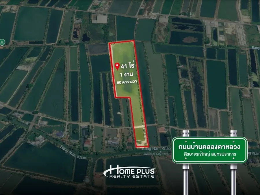 ขายที่ดินติดถนนบ้านคลองตาหลวง ตำบลศีรษะจรเข้ใหญ่ อำเภอบางพลี สมุทรปราการ ที่ดินแปลงใหญ่ ทำเลบางพลี ใกล้สนามบินสุวรรณภูมิ เหมาะสำหรับนักลงทุน ผู้พัฒนาโครงการ และผู้ประกอบการที่มองหาที่ดินรองรับการพัฒนาในระยะยาว รายละเอียดทรัพย์ ขนาดที่ดิน 41 ไร่ 1 งาน 80 ตารางวา หน้ากว้างประมาณ 114 เมตร ลึกประมาณ 754 เมตร ที่ดินยังไม่ถม มีน้ำ ลักษณะแปลงยาว ติดถนนสาธารณะ เข้า–ออกได้หลายเส้นทาง เหมาะสำหรับพัฒนาโครงการที่พักอาศัย โครงการจัดสรร ทำการเกษตร โกดังสินค้า หรือโครงการเชิงพาณิชย์ขนาดใหญ่ ราคาขาย 120,500,000 บาท ติดต่อสอบถาม / นัดหมายเข้าชมทรัพย์ โทรศัพท์: 092-839-2666 (คุณหนึ่ง) Office: 02-044-9855 Website: homeplusrealty.co.th Line: @homeplusrealty หรือคลิก https://lin.ee/LW3O9fO จุดเด่นของที่ดิน - ที่ดินแปลงใหญ่ รองรับการพัฒนาได้หลากหลายรูปแบบ - ทำเลใกล้สนามบินสุวรรณภูมิ และโซนโลจิสติกส์ เหมาะกับคลังสินค้าและศูนย์กระจายสินค้า - มีแนวโน้มมูลค่าเพิ่มในอนาคต จากการพัฒนาโครงสร้างพื้นฐานและนิคมอุตสาหกรรมโดยรอบ - เข้าออกสะดวก เหมาะสำหรับวางผังโครงการระยะยาว ทำเลและการเดินทาง - ถนนบ้านคลองตาหลวง - ถนนบางนา–ตราด - ถนนลาดกระบัง - ทางหลวงหมายเลข 3028 - เชื่อมต่อโซนบางนา ลาดกระบัง และสนามบินได้ สถานที่สำคัญใกล้เคียง - Central Village - มหาวิทยาลัยหัวเฉียวเฉลิมพระเกียรติ - สนามบินสุวรรณภูมิ - Mega Bangna - Lakewood Country Club - มหาวิทยาลัยอัสสัมชัญ - วัดบัวโรย วัดศรีวารีน้อย และโรงพยาบาลบางเสาธง เหมาะสำหรับ - นักลงทุนที่มองหาที่ดินแปลงใหญ่เพื่อพัฒนาโครงการระยะยาว - ผู้พัฒนาโครงการจัดสรร ที่พักอาศัย หรือมิกซ์ยูส - ผู้ประกอบการด้านโลจิสติกส์ โกดัง และศูนย์กระจายสินค้า ใกล้สนามบิน - ผู้ที่ต้องการถือครองที่ดินเพื่อเพิ่มมูลค่าในอนาคต HomePlus Realty Estate ที่ปรึกษาด้านอสังหาริมทรัพย์มืออาชีพ ดูแลครบทุกขั้นตอน ตั้งแต่การให้คำปรึกษา วิเคราะห์ความคุ้มค่า จนถึงการโอนกรรมสิทธิ์อย่างมั่นใจ