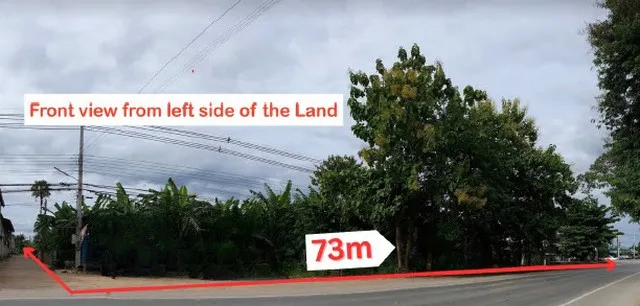 2) ที่ดินติดถนนใหญ่ทางหลวง 4 เลน (3218) และมีรั้วคอนกรีตโดยรอบ โดยมีหน้าที่ดินหน้ากว้าง 73 เมตร และที่ดินสามารถทำทางเข้า-ออกได้ทั้งหมด 3 ทาง: ด้านหน้า ด้านฝั่งซ้ายที่ดิน และด้านหลัง