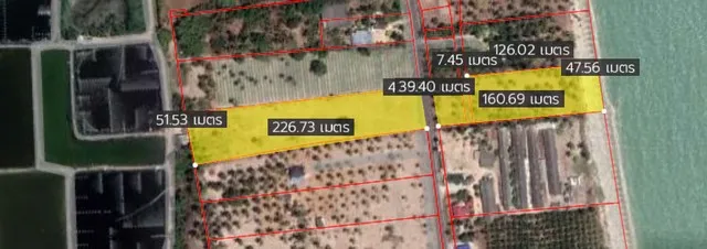 2) ที่ดินติดถนน นศ.ถ 093/001 เขตทางกว้าง 12 เมตร และหน้ากว้างติดทะเล 47 ม.
