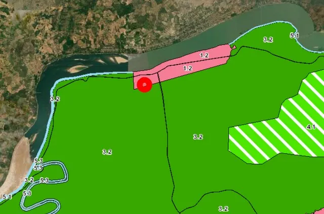 1) ที่ดินปลูกต้นสัก (ภูมิประเทศมีลักษณะเป็นเนินสูงมองเห็นแม่น้ำโขง) ที่มีเนื้อที่ 19-1-74 ไร่ (7,740 ตร.ว.), ถนนทางเข้าที่ดินกว้าง 9 ม.