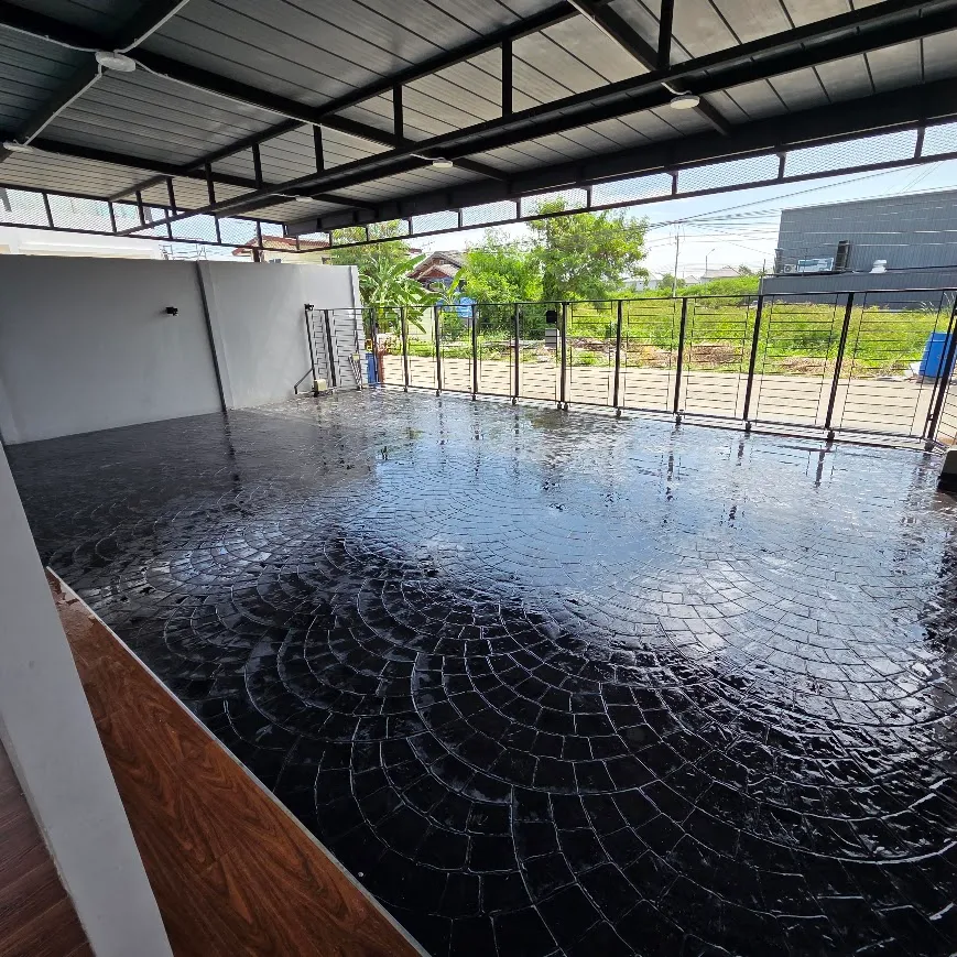 โรงจอดรถ เลือกใช้ พื้นคอนกรีตพิมพ์ลาย #ConcreteStamp เพื่อ เพิ่มความหรูหรา ด้วย #วัสดุพรีเมี่ยม ของโครงการเรา