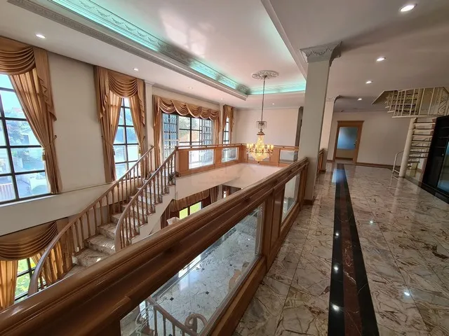 -- ตัวบ้านโครงสร้างใหญ่แข็งแรง ตัวบ้านสูงสุดในหมู่บ้าน บันไดวน เพดานสูง double volume’ พื้นปูหินอ่อน โคม Chandelier ขนาดใหญ่ ชั้น 3 ห้อง penthouse วิว 360°