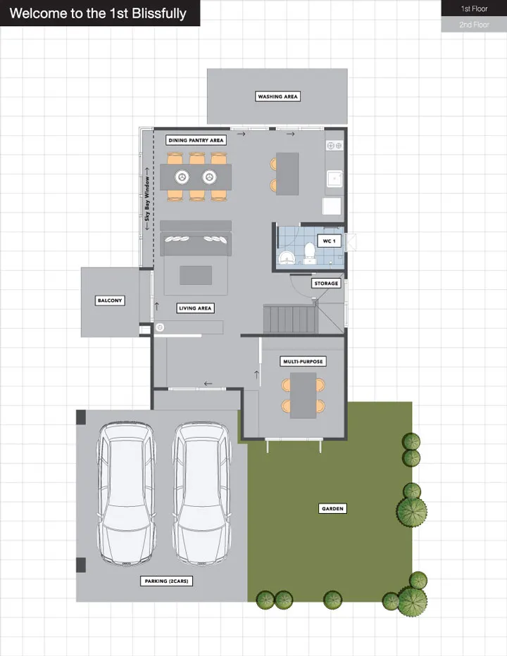 • ชั้นล่างสามารถกั้นเป็นห้องนอนได้เพิ่มอีก 1 ห้อง