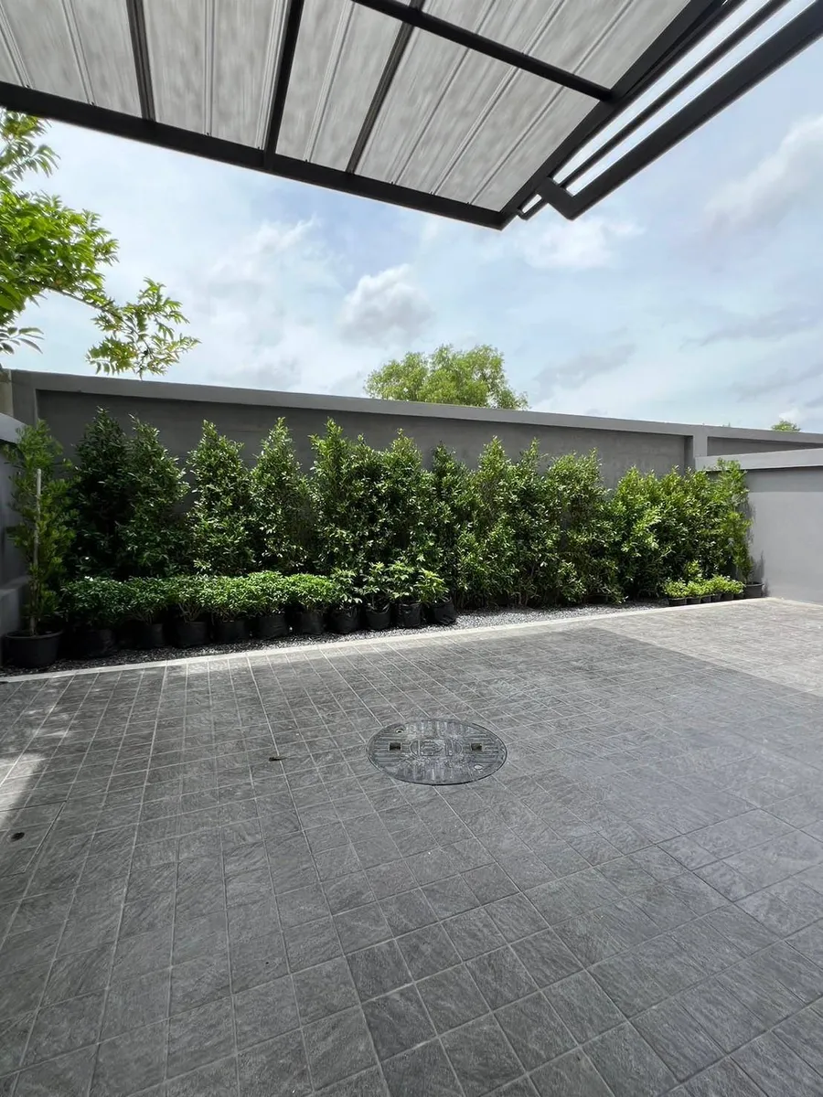 - หลังบ้านมีพื้นที่เยอะมาก ต่อหลังคา ปูกระเบื้อง จัดสวน ไว้เรียบร้อย