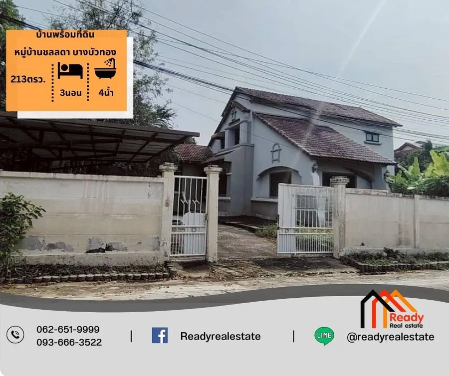 ขายบ้านพร้อมที่ดิน หมู่บ้านชลลดา บางบัวทอง เนื้อที่ 213 ตารางวา