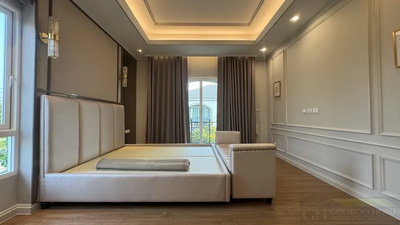 * Master Bedroom: ขนาดใหญ่พร้อมพื้นที่ Walk-in Closet และตู้เสื้อผ้าหน้าบานกระจกหรู