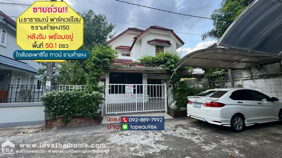 ขายบ้านเดี่ยว2ชั้น หมู่บ้านพาร์คเวย์โฮม ซอยรามคำแหง150 พื้นที่ 50.1 ตรว. ขาย 4.19 ล้านบาท หลังริมพร้อมอยู่ (ปรับราคาใหม่ ถูกที่สุดในโครงการนั้นแล้ว)